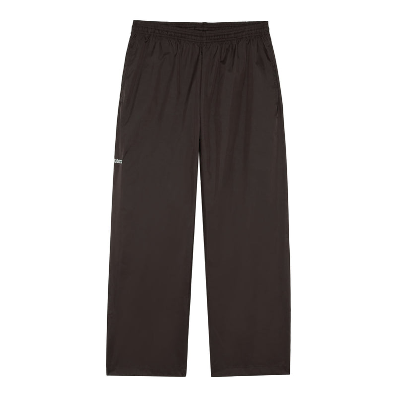 Brown lined drawstring rain trousers with reflective embroidery logo.