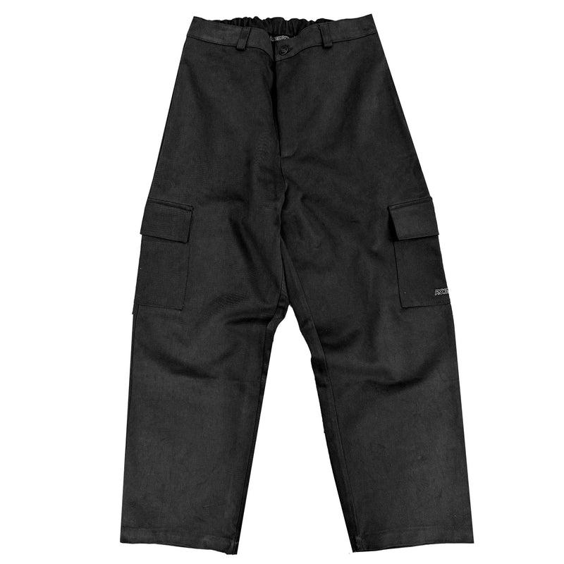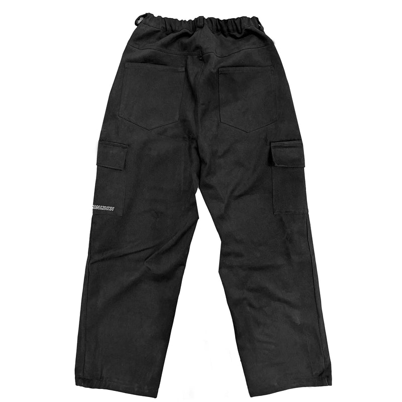 Loose fit with two side leg pockets. Sizing runs slightly large.