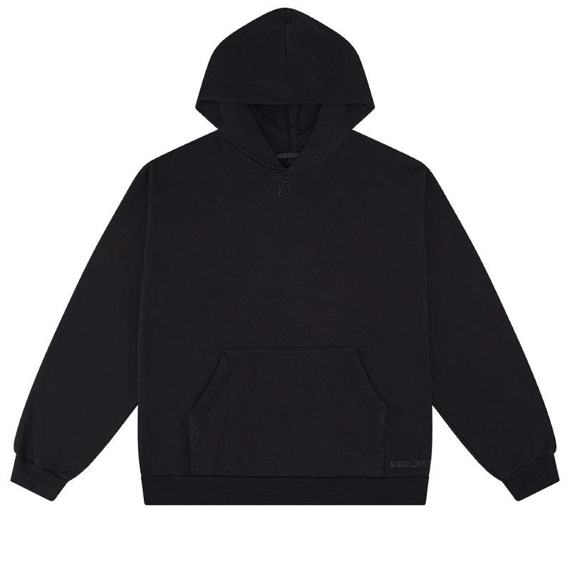 Heavy hoodie with black reflective embroidered Eire motif on the centre front neck and additional embroidered logo on the bottom right hem.